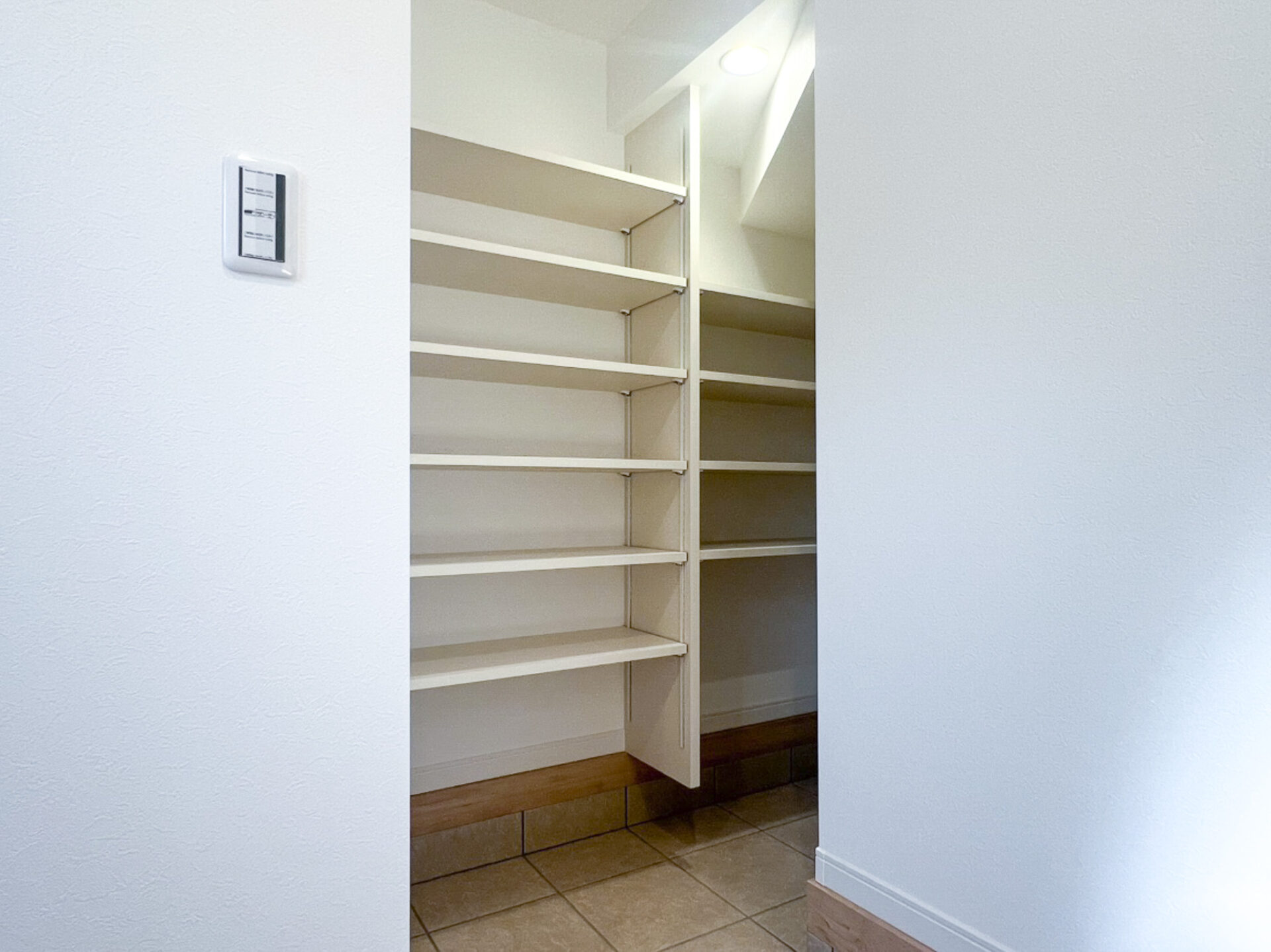 玄関まわりをすっきりと保つ、可動棚付きの広々シューズクローク。 靴だけでなく、傘やアウトドア用品など、かさばりがちな物もたっぷり収納できます。 下部の引き出し収納も便利。整理整頓が楽しくなる機能的な空間設計です。